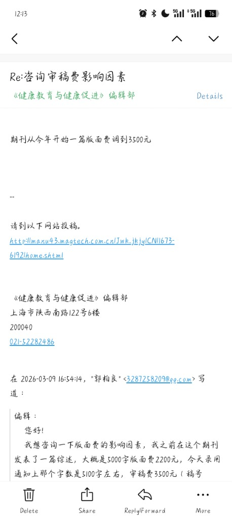 文章终于被回复啦,加上了编辑老师的微信,沟通稿件情况,第一次投稿这么顺利,真的不敢想象,真的很感谢编辑老师
